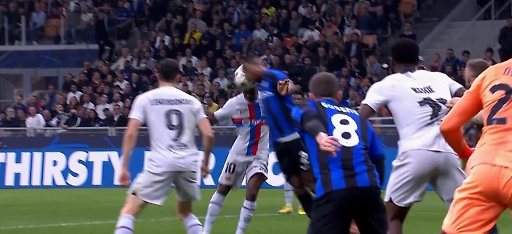 Серджи Роберто навесил с правого фланга в центр штрафной, где за мяч боролись защитник «Интера» Дензел Думфрис и Ансу Фати. Мяч попал в руку голландца, но ни Винчич, ни ВАР не увидели тут пенальти. Но почему?