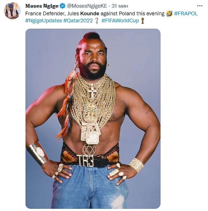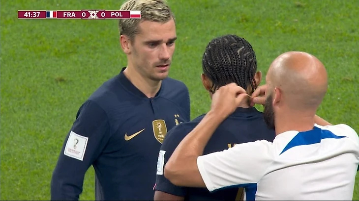 Режиссер матча между сборными Польши и Франции вывел крупный план защитника «Барселоны» и сборной Франции Жюля Кунде. Внимательный зритель увидел, что игрок забыл снять с шеи золотую цепочку.