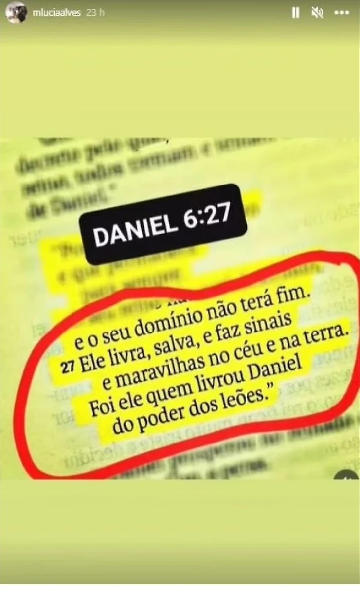 В своем последнем посте мать бразильского футболиста поделилась стихом из Библии «Даниил 6:27», в котором говорится следующее: