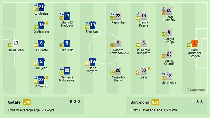 По версии портала SofaScore, наивысшие оценки заслужили Рафинья и Серджи Бускетс, а также Марк-Андре тер Стеген. Гави же заработал самый низкий балл, ко всему прочему став худшим по точности передач (65%).