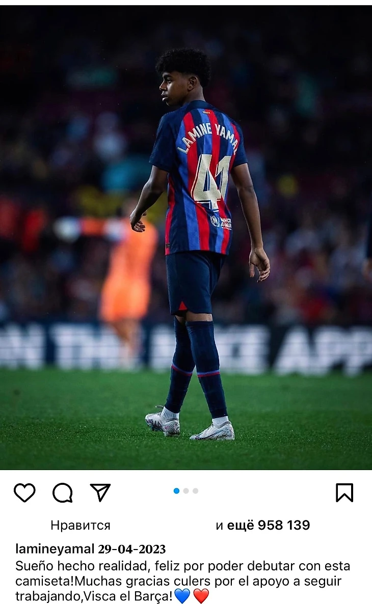 После игры Ямаль опубликовал в соцсетях фото с подписью: