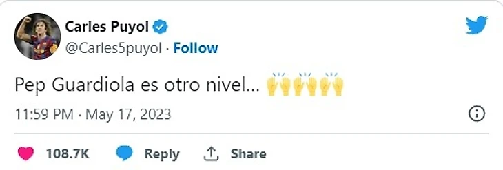 «Пеп Гвардиола – это другой уровень». Карлес Пуйоль отпраздновал победу «МанСити» над «Мадридом» в полуфинале Лиги чемпионов.