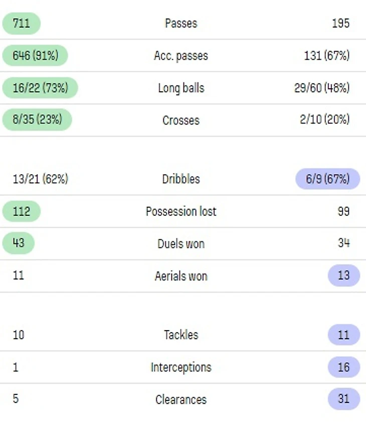 И показатели всей команды: («Барса» в правой колонке):
