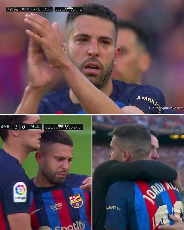 Как только игра остановилась, Жорди не смог сдержать слез. Он обнялся с Бускетсом и тер Стегеном и медленно покинул поле, пока переполненные трибуны «Камп Ноу» аплодировали ему стоя.