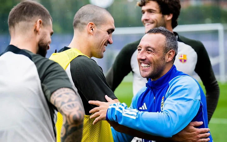 На тренировку «блауграны» заглянул Санти Касорла, который этот сезон начал в своем родном «Реал Овьедо». В Кубке Испании команда Санти обыграла «Манресу» из одноименного каталонского городка.