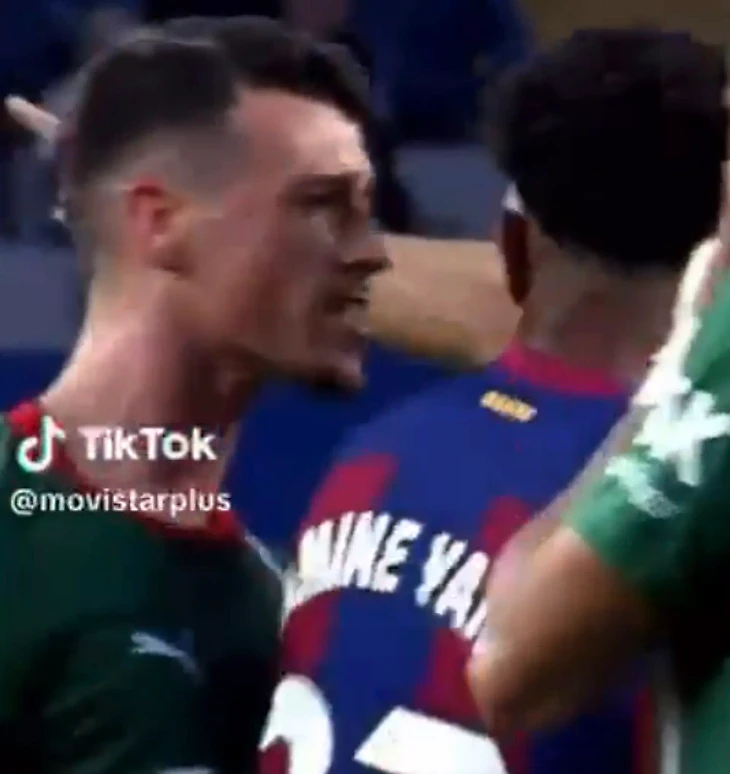 «Эй, куда ты лезешь на ребенка, идиот?» сказал Иньиго Мартинес игроку «Алавеса» Антонио Бланко, который явно имел что-то против Ламина Ямаля.