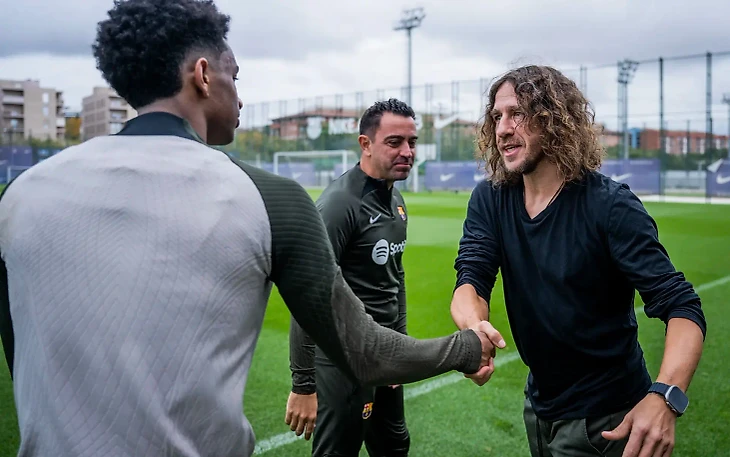 Пока часть футболистов «Барсы» разлетелась по сборным, оставшиеся игроки продолжают работать на базе клуба. На последней тренировке каталонцев присутствовал особый гость – Карлес Пуйоль.