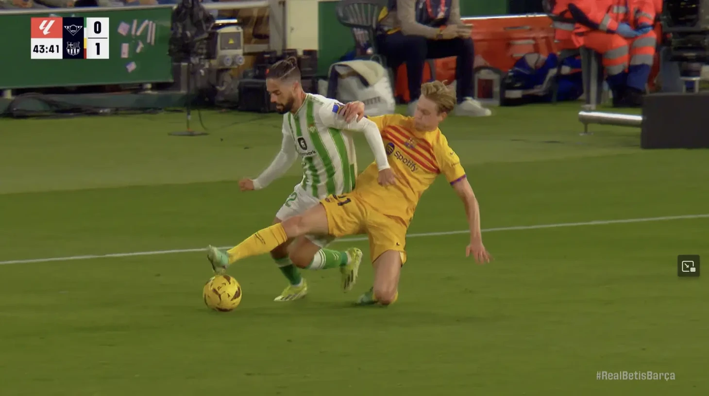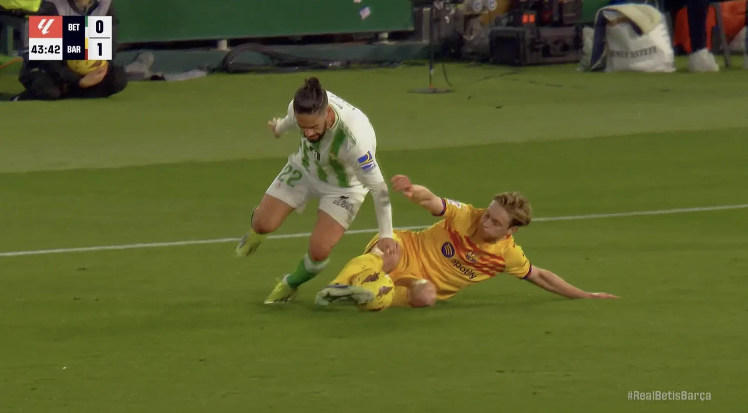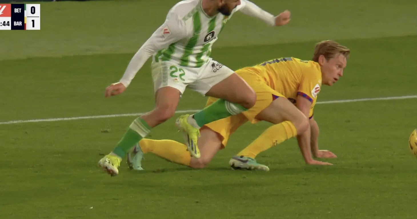 В эти минуты проходит матч 21 тура между «Бетисом» и «Барселоной». Благодаря голу Феррана Торреса «блауграна» в первом тайме вышла вперед. Однако лучший игрок первой половины, несомненно, Френки де Йонг.