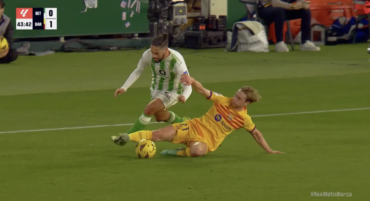 Наиболее ярким получился чистый подкат от Френки, который он сделал в борьбе с Иско. Настоящее искусство борьбы без грязи.
