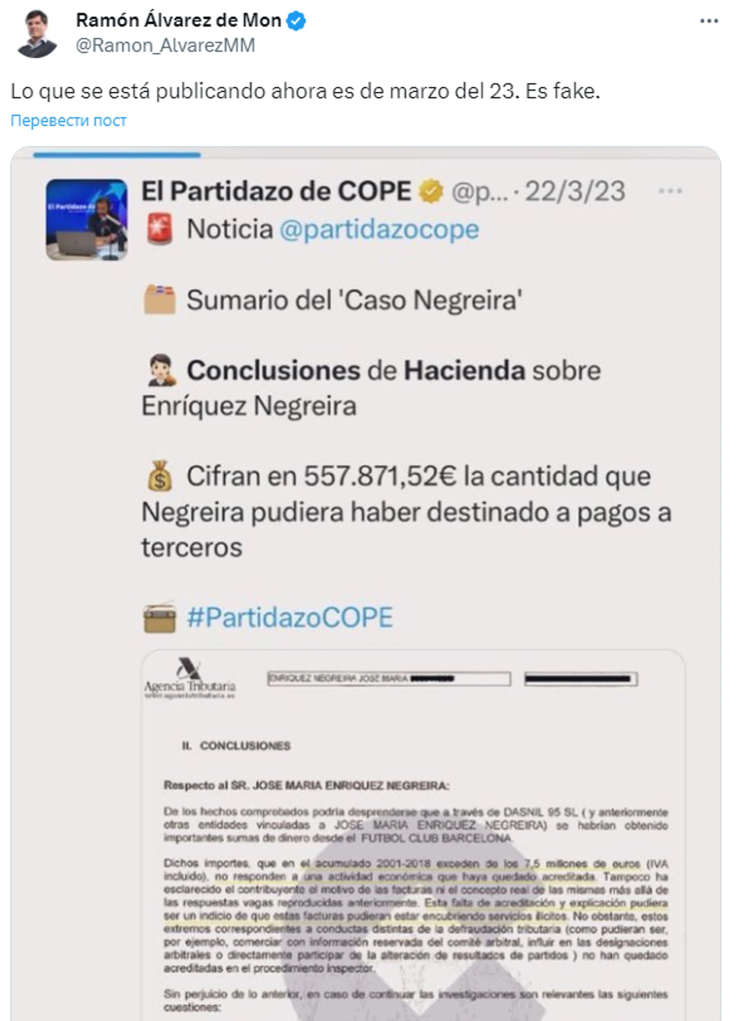 Обновление. По словам журналиста Рамона Альвереса де Мона, документ, на который ссылается Diario Sport, опубликовали еще 23 марта 2023 года. Он назвал новую информацию фейком.