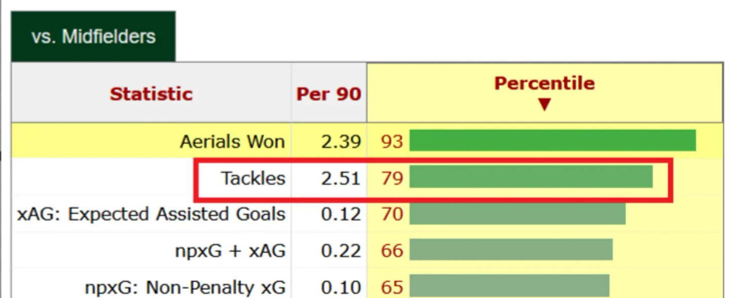 График аналитической компании FBref показывает, что Онана входит в число 21% лучших полузащитников в Европе по отборам и в 7% - по воздушным единоборствам.