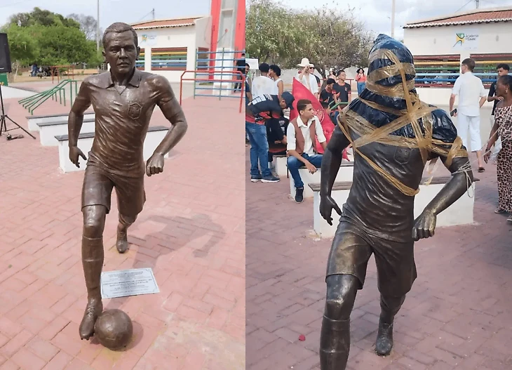 Неизвестные ночью напали на статую футболиста в его родном городе, после новости о приговоре бразильца к четырем с половиной годам тюремного заключения по делу об изнасиловании.