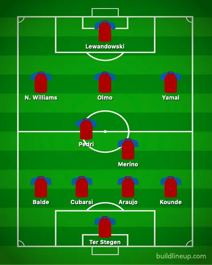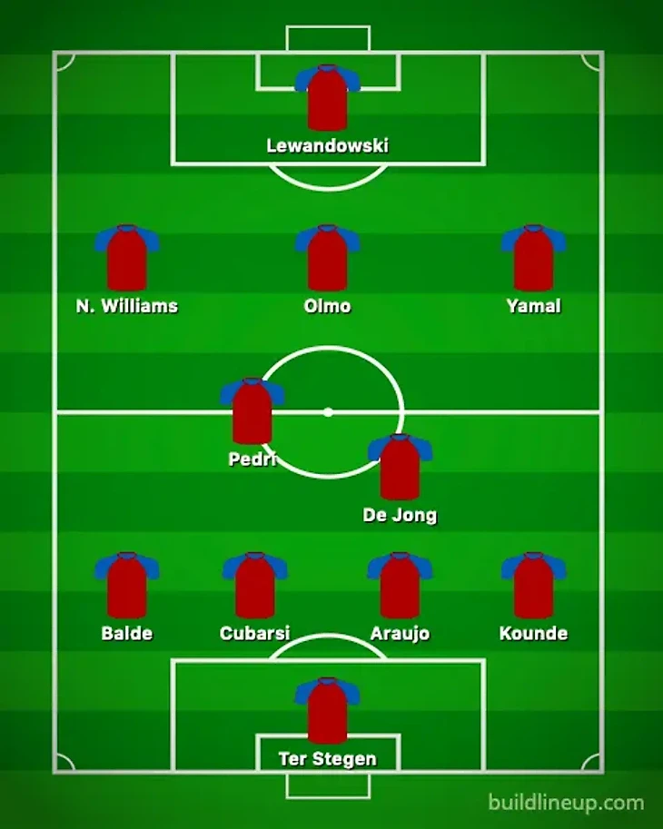 «Барселона» планирует приобрести Нико Уильямса и Дани Ольмо этим летом. Эти двое легко вписываются в классическую расстановку Ханси Флика 4-2-3-1.