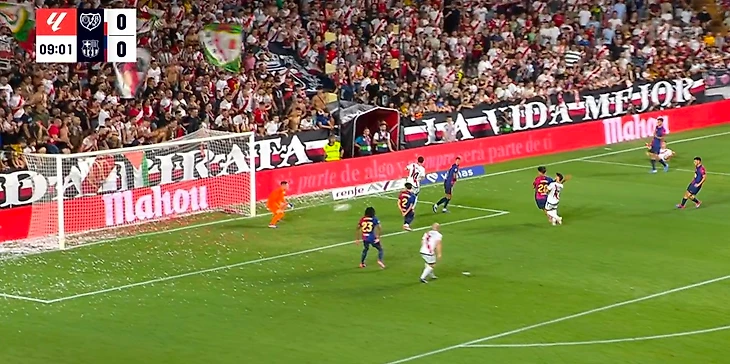 Мало того, через 20 минут тер Стеген устроил бурный конфликт с нападающим «Райо», едва не закончившийся предупреждением.