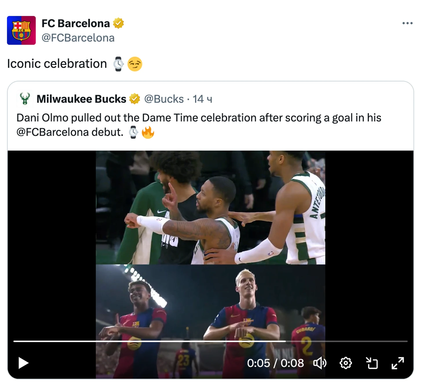«Милуоки Бакс» (Лиллард сейчас играет здесь) поддержали испанца в соцсетях, а «Барса» репостнула со словами «Легендарное празднование».