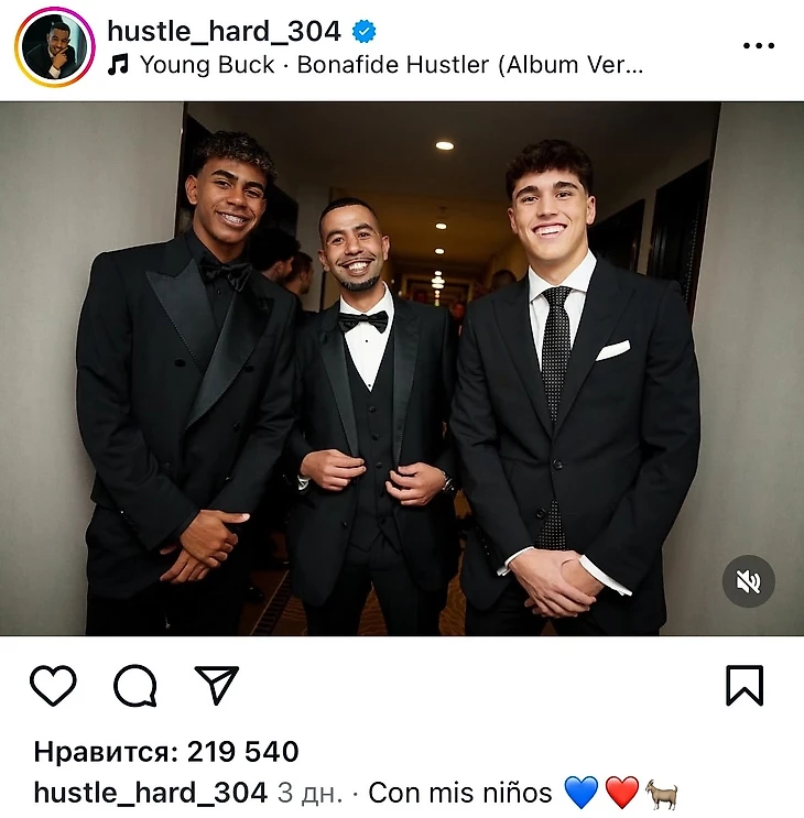 Отцу Ламина Ямаля, Муниру Насрауи, всего 35 лет. На церемонии вручения «Золотого мяча» мужчина почти слился с молодежью из «Барсы».