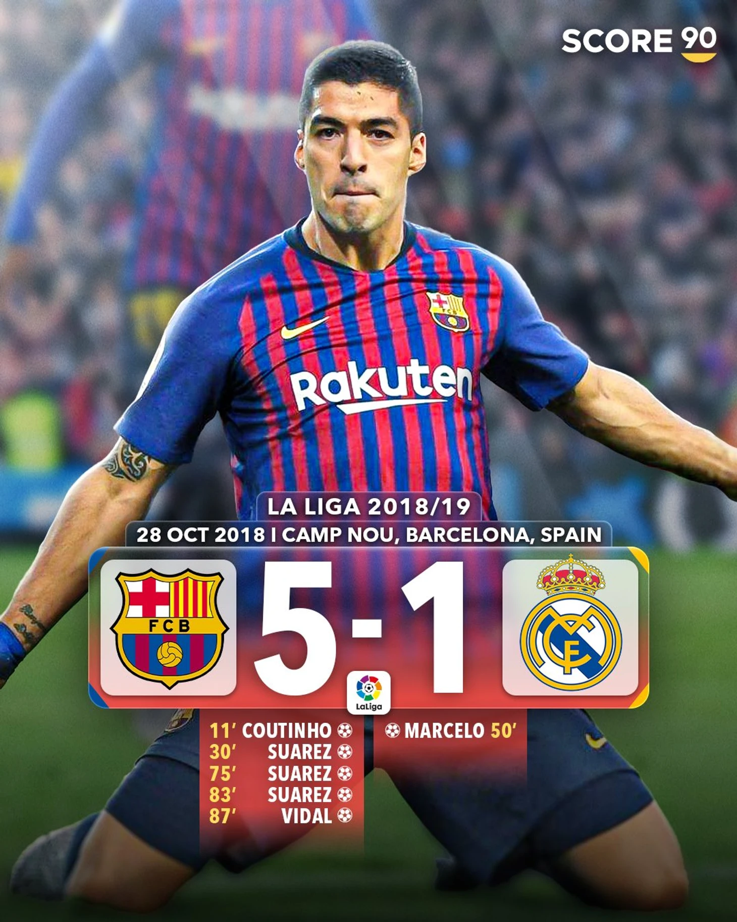 В истории главного испанского противостояния и раньше были разгромы. Портал Score90 вспомнил самые крупные победы «Барсы» над «Реалом».