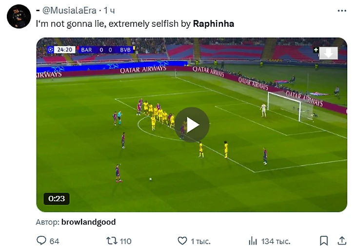 Как отреагировали фанаты? Вспомнили другой подобный момент и посчитали, что Рафинья украл гол: