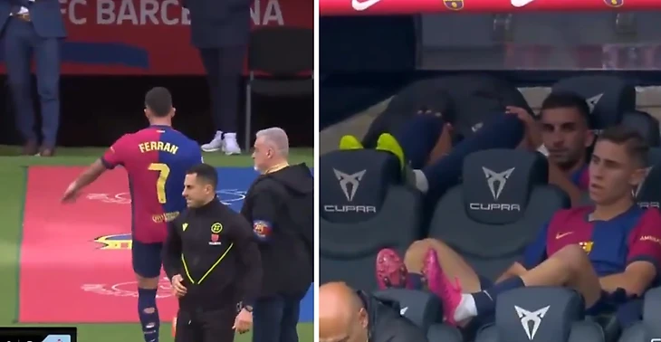 Ферран Торрес, который провел неплохой матч и отметился голом, явно был недоволен своей заменой. Во втором тайме, когда Ханси Флик снял его с игры, Торрес отреагировал резко — пнул мяч и проигнорировал тренера.