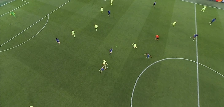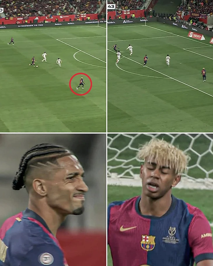 Помните, когда «Барса» убежала в контратаку, а Дани Ольмо выбрал неудачный вектор атаки? Замешкавшийся Рафинья не нашел удачного момента для удара либо передачи Ямалю и запорол эпизод.