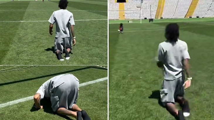Вингер «Барселоны» Рафинья снова обратился к духовной традиции, пройдя на коленях футбольное поле в знак благодарности Богу за успешный сезон. Видео опубликовала его жена Наталия с трогательным посланием о его вере и признательности.