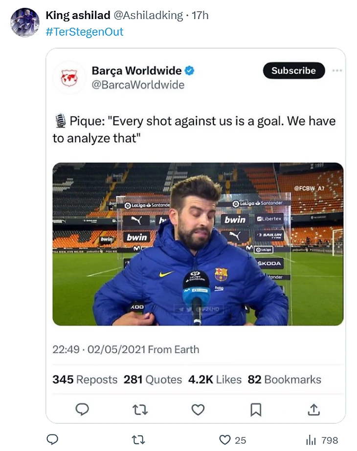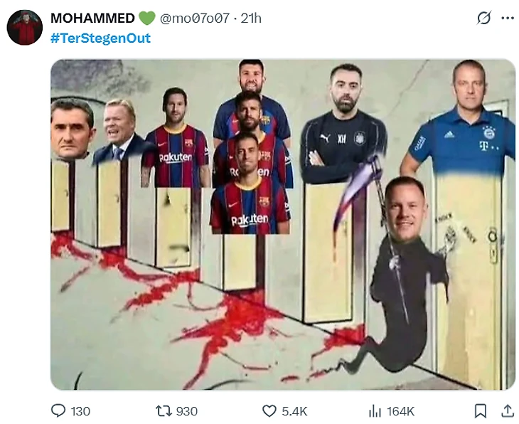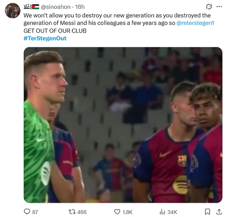 💭 «Мы не позволим тебе уничтожить наше новое поколение так, как ты уничтожил поколение Месси и его коллег пару лет назад. Так что, мистер Тер Стеген, вали из нашего клуба».
