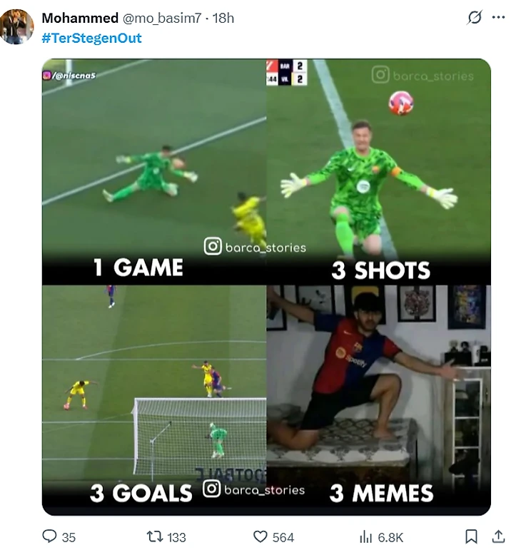 Похоже, болельщики «блауграны» не хотят видеть немца в клубе. В соцсети X хештег #TerStegenOut, под которым фанаты «Барсы» призывают попрощаться с вратарем, занял четвертое место в мировых трендах.