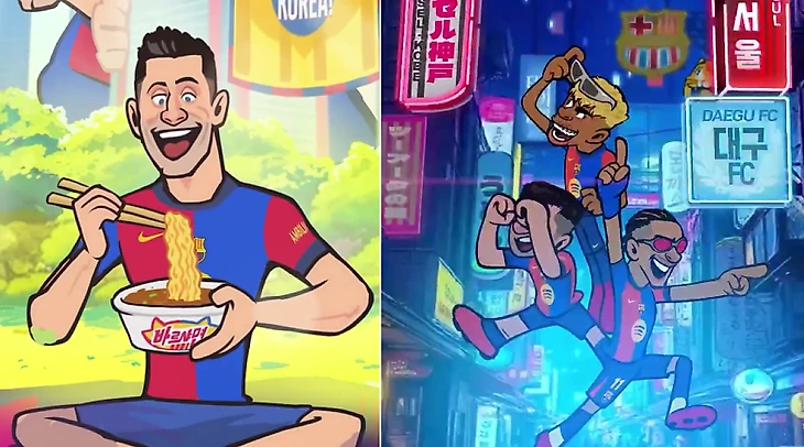 «Барселона» анонсировала летнее турне мультфильмом. Зубы Ямаля, лапша Левандовского и другие отсылки