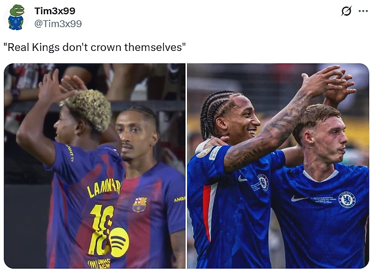 Болельщики с подписью «настоящие короли не коронуют себя сами» постят фотографии игроков, надевающих невидимую корону на своих партнеров.