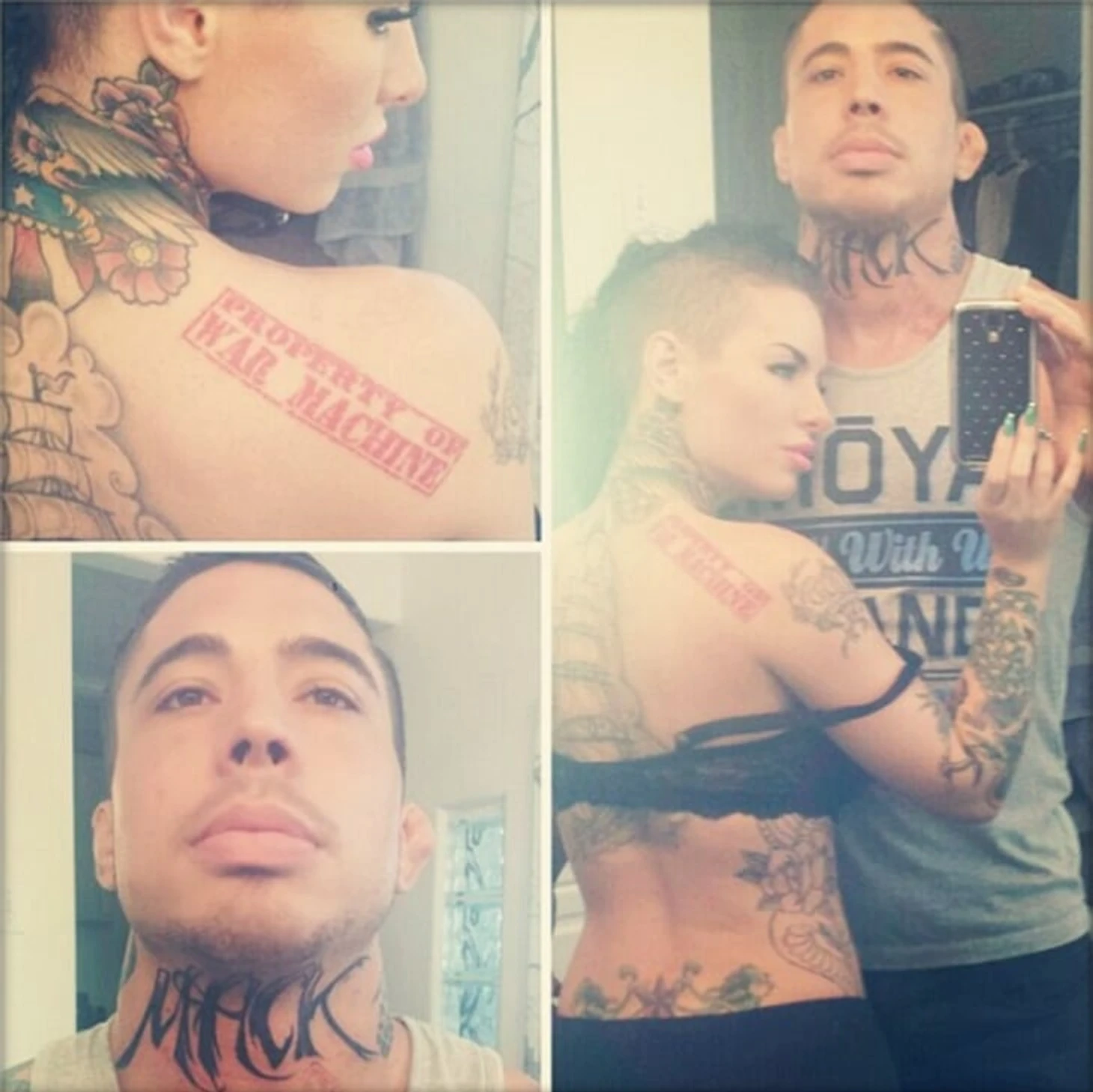 Судя по всему, в это самое время публично пара делала вид, что между ними все хорошо. В один из дней Кристи и выложила фото той самой татуировки о том, что теперь она – собственность военной машины. Она даже регулярно приходила на его бои, а он не запрещал ей сниматься в порно.