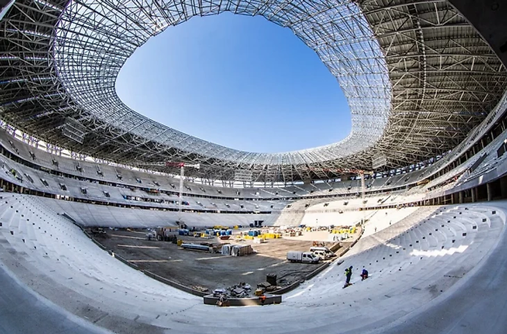 Туристам особенно нравится футуристичный дизайн стадиона. Яркой подсветкой уже никого не удивить, а форма фантастического НЛО в центре города— захватывающее зрелище.