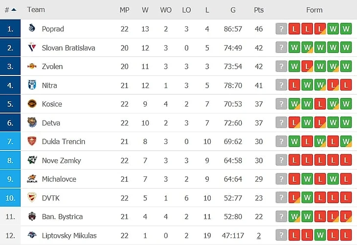 Осечками “Попрада” воспользовались его главные конкуренты - “Слован” и “Зволен”, практически не терявшие очки в последних десяти матчах. Теперь именно эти два клуба занимают первые два места по потерянным очкам, при этом “слован” находится выше за счёт результатов личных встреч. За последний месяц команды встретились дважды, и оба раза братиславский клуб одерживал победу в серии буллитов.
