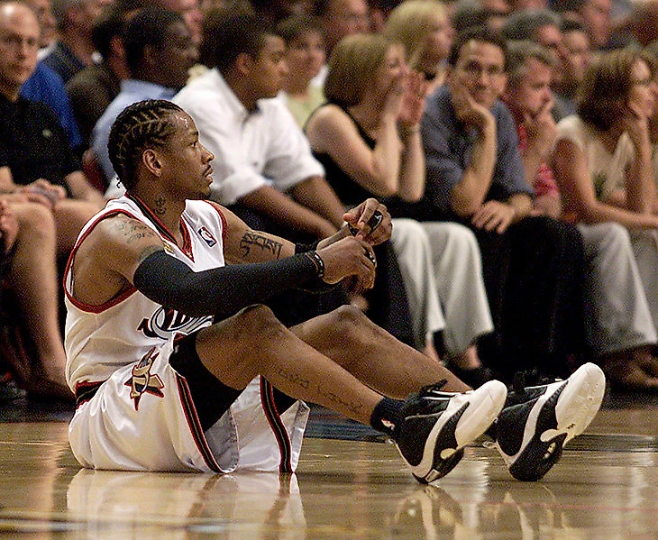 Но одна легенда НБА гласит, что знаменитый аксессуар Аллена Айверсона – рукав – появился не просто так. По легенде, в 2001 году Дэвид Стерн потребовал от Айверсона прикрыть какую-то особенно неприличную татуху на руке (на самом деле Аллен так сам спрятал нелюбимое изображение пантеры, без запроса НБА), и родилась главная баскетбольная мода нулевых.