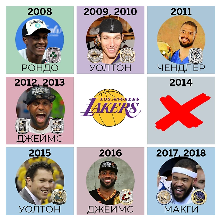 Леброн и Чендлер – не единственные чемпионы в заявке «Лейкерс». Более того, ЛАЛ собрали вместе игроков и тренера с лучшей коллекцией чемпионских перстней в лиге: