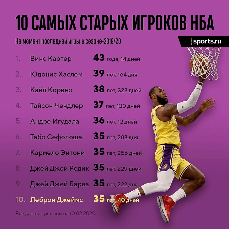 И вот Леброн уже официально в топ-10 самых старых игроков лиги. Вечный Винс Картер, пара игроков «Хьюстона», пара Джей Джеев, Игги Освобожденный – интересная компания для Леброна «в доме престарелых НБА».