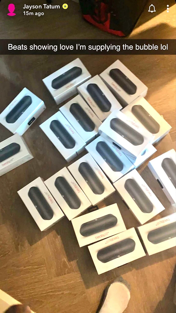 А Джейсону Тейтуму его спонсор – Beats – прислал коробку аудиоколонок. На всю команду.