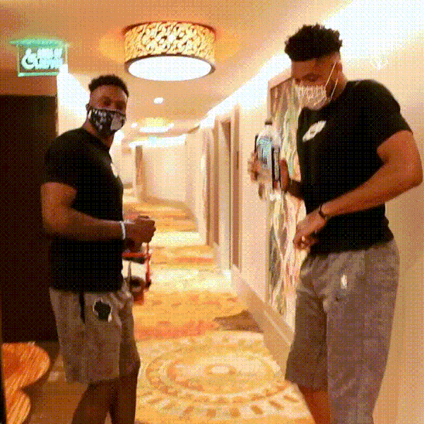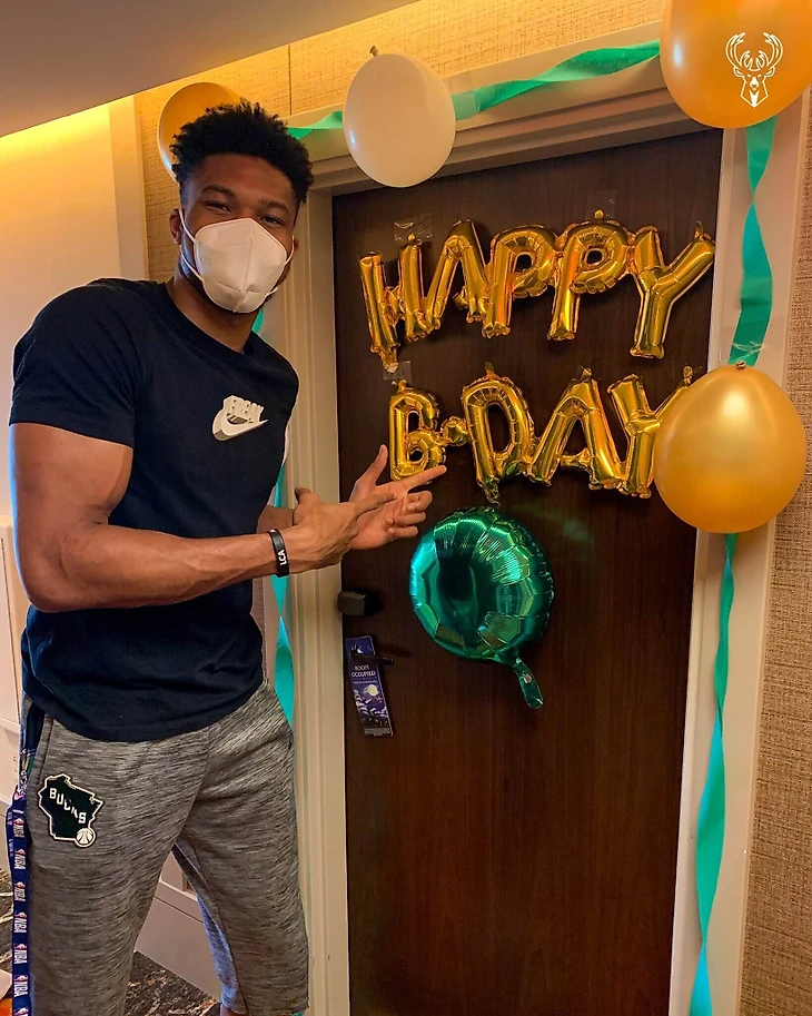 Те немногие, кому хватает семейной атмосферы и в Орландо – братья Адетокумбо. Яннис и Танасис – одноклубники, так что когда 18 июля Танасису исполнялось 28, брат смог поздравить его лично. Будущий MVP сезона-19/20 украсил дверь в гостиничный номер брата воздушными шариками и подарил ему торт в виде баскетбольного кольца с мячом.