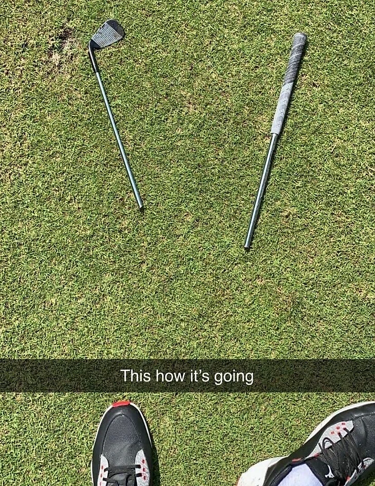 Тэйтум увлекся гольфом. Насколько успешно? Стройте сами догадки – или он так много играет, что инвентарь не выдерживает, или что-то пошло не так при замахе: