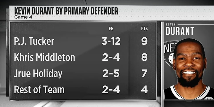 Даже когда у «Нетс» появлялись какие-то призрачные шансы на камбэк (усилиями Дюрэнта, естественно), «Бакс» тут же отвечали. Сегодня у Криса Миддлтона залетало все, даже трехочковые на исходе четверти в окружении трех защитников: