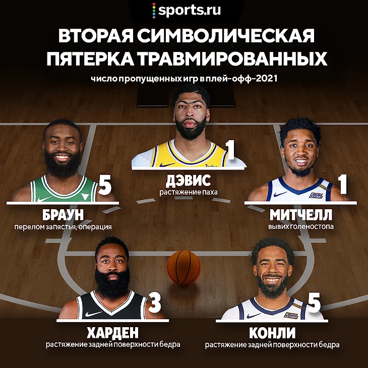 Вторая пятерка – также участники Матча всех звезд-2021. Любого возраста, с самым разным «пробегом», от травм не застрахован никто: