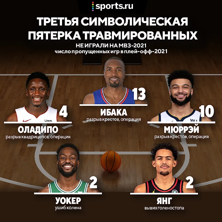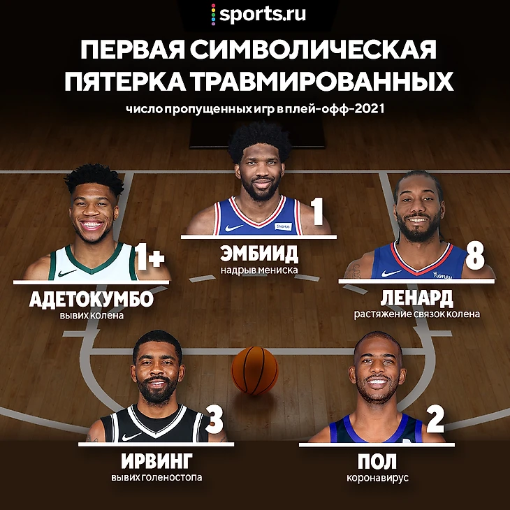 Кто-то пропускал 1-2 матча и затем играл почти без ограничений, у кого-то были очевидные проблемы со здоровьем после возвращения, как у Эмбиида или Хардена. А у кого-то повреждения настолько серьезные, что требовалась операция или как минимум отдых до конца серии. Кайри Ирвинг и Кавай Ленард не успели восстановиться до того, как их клубы вылетели.
