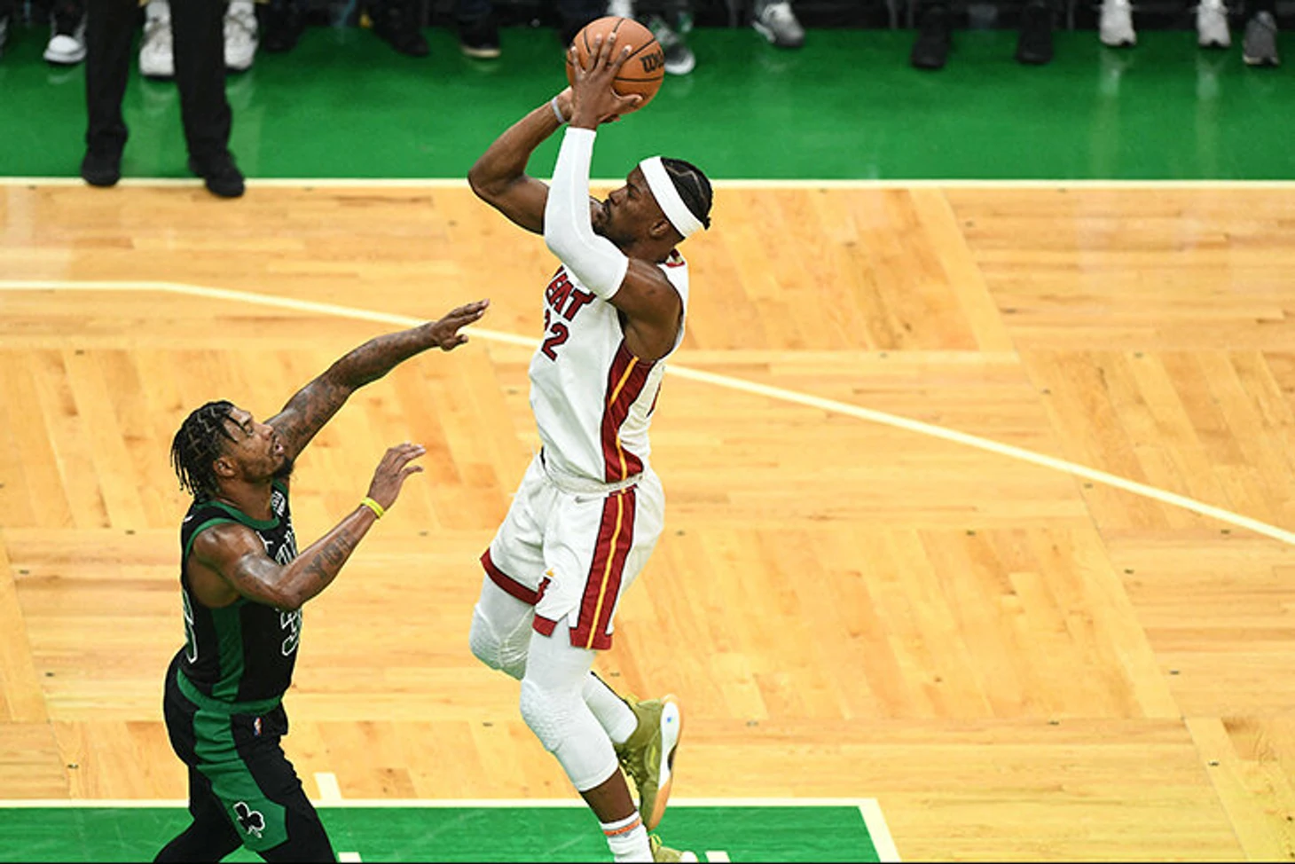 Джимми Батлер не мог просто так оставить жертву друга. Только не после двух позорных промахов Брауна со штрафной линии. После подбора Джимми набрал 2 очка с фолом, 102:99 – и это окончательно подбило уверенность «Селтикс». Во второй половине матча пара Тейтум-Браун испарилась: всего три попадания с игры на двоих, при этом 6 потерь, «Бостон» держался лишь благодаря точности штрафных, защите (против всех, кроме Джимми) и поймавшему кураж запасному защитнику Деррику Уайту.