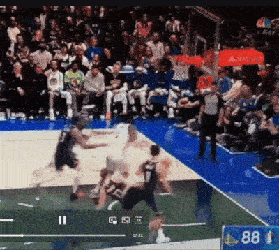Середина третьей четверти, неудачная атака «Голден Стэйт», центровой Кевон Луни идет на подбор, но мяч уходит в аут.