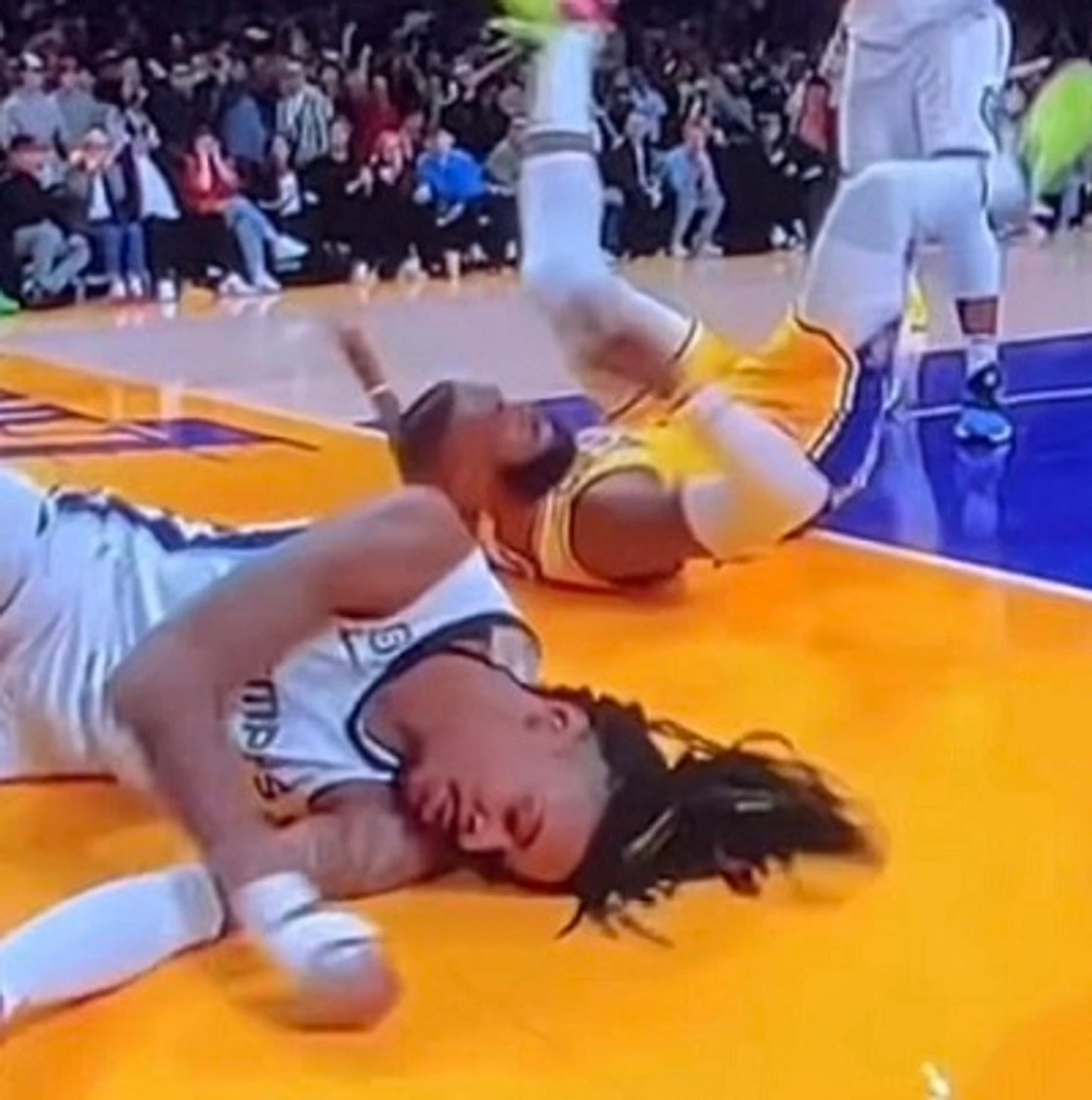 Счет к моменту падения Джа (не единственного!) на паркет был равный – 99:99. В этом – огромная заслуга защитника «Лейкерс» Д’Анджело Расселла, который проводил неудачный матч, но незадолго до этого момента трижды за минуту попал из-за дуги и единолично организовал рывок 9:2. Правда, затем получил шестой фол и закончил матч досрочно.