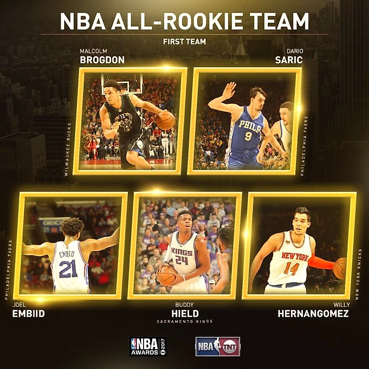 К тройке финалистов награды лучшему новичку Шаричу, Брогдону и Эмбииду в первой пятерке новичков присоединились Бадди Хилд и Уилли Эрнангомес.