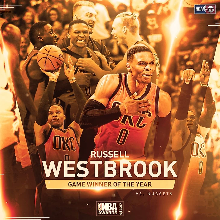 5:38 Вторая награда за день (будет и третья) – Расселл Уэстбрук побеждает в номинации «Лучший победный бросок» года: