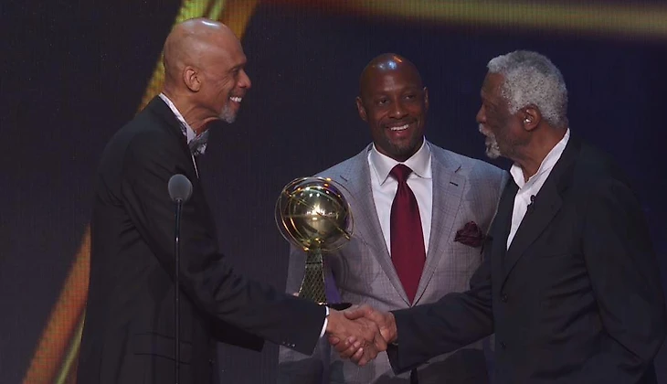 5:11 Лучший момент церемонии. Билл Расселл пересчитал великих центровых вокруг себя и заявил: «Я вам всем надрал бы задницу».