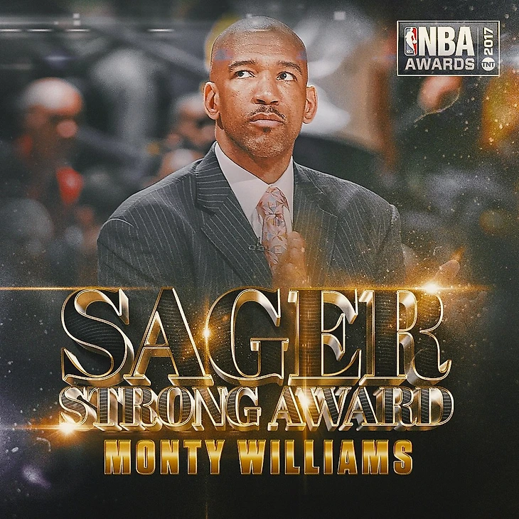 5:55 Эрни Джонсон и жена Крэйга Сэйгера вручают Монти Уильямсу, потерявшему жену полтора года назад в автокатастрофе, но вернувшемуся в баскетбол, награду имени Крэйга Сэйгера. Самые громкие аплодисменты сегодня.