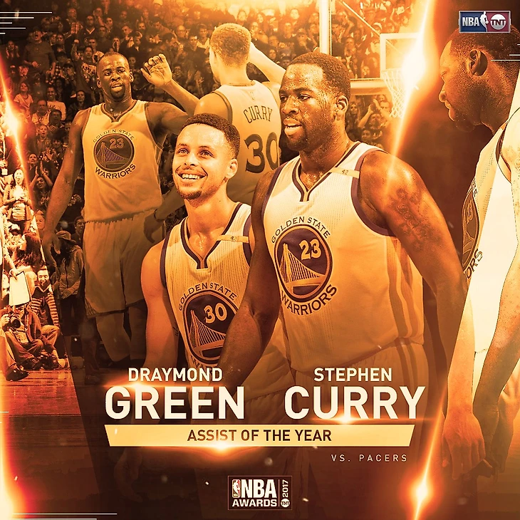 4:39 Пошла очередь наград, которые определяли фанаты. Лучшей передачей года признана комбинация ГСВ: аутлет-пас от Дрэймонда Грина и слепой наброс от Стефа Карри.