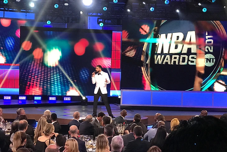 3:50 Ведущим церемонии будет самый известный болельщик НБА среди знаменитостей (когда он успел перехватить это звание у Джека и Спайка?) Дрейк.